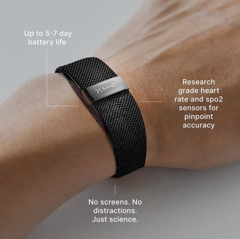 Hume Band is a revolutionary health monitoring device that transforms how you understand and manage your wellbeing. Equipped with advanced artificial intelligence technology, Hume Band delivers personalized insights about your health through continuous tracking of essential biomarkers, including heart rate variability, resting heart rate, sleep patterns, activity levels, and skin temperature.